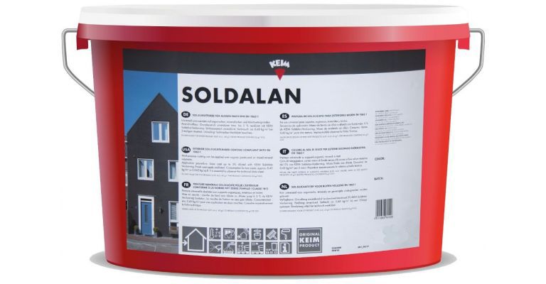 KEIM Soldalan is een universele buitenmuurverf op basis van het bindmiddel sol-silicaat ( combinatie) van kieselsol en waterglas) geschikt voor organische , minerale en gemengde ondergronden zoals bv. gevelisolatie. KEIM Soldalan is hydrofoob, zeer dampopen , lichtecht, UV – stabiel, onbrandbaar en extreem weerbestendig met een minimale neiging tot vervuiling.